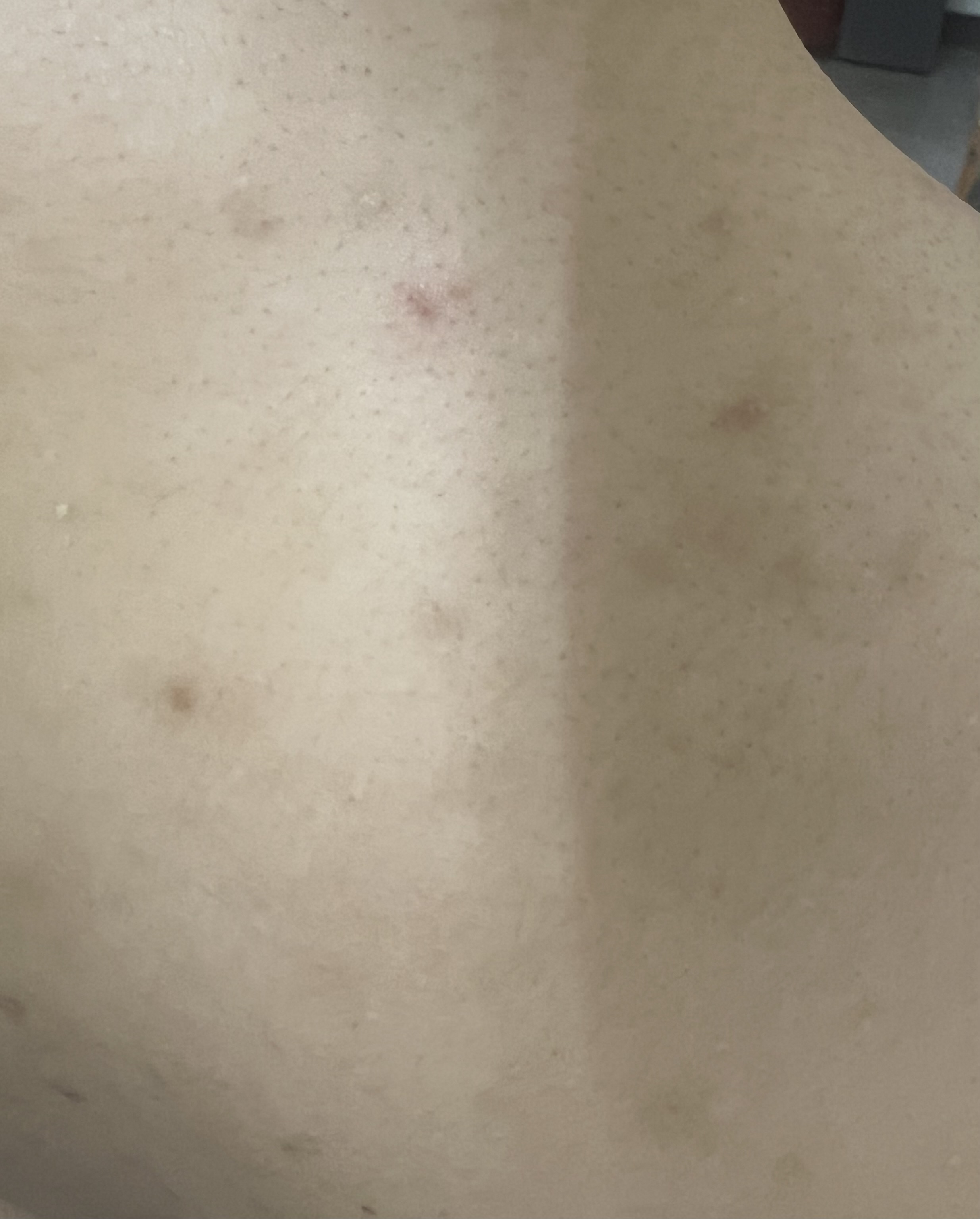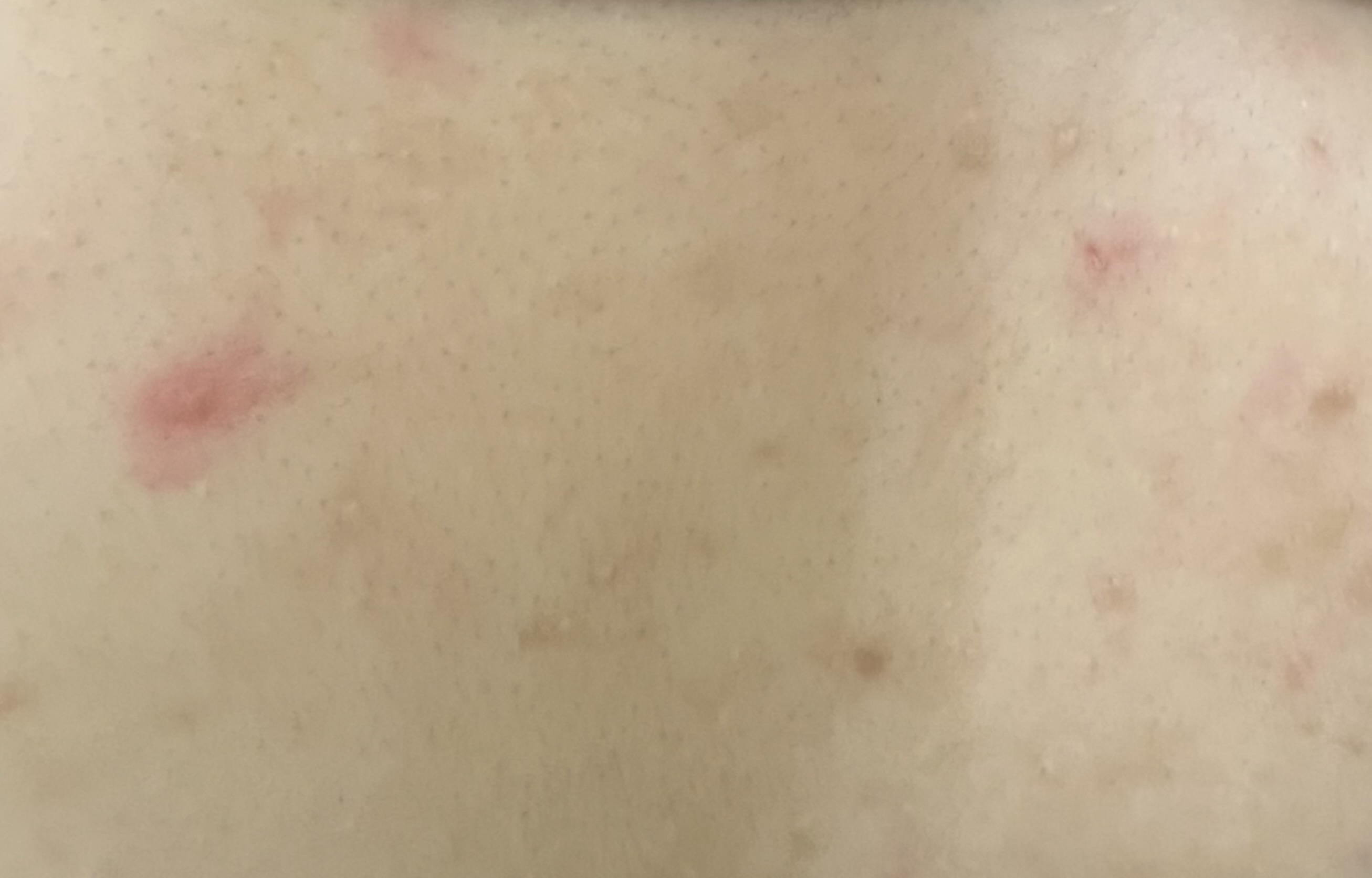 噴噴露又擦乳液斷斷續續14天後,本來背上有很可怕的毛孔角化,都不見了!本來躺著會痛的痘痘也都消失!