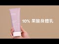A:10%果酸身體乳的配方是專為身體設計的,但如果它的質地適合您的膚質,可以依據您的保養需求,在夜間保濕的程序使用在臉上。但我們仍會建議根據膚質,挑選適合的臉部果酸去角質產品。