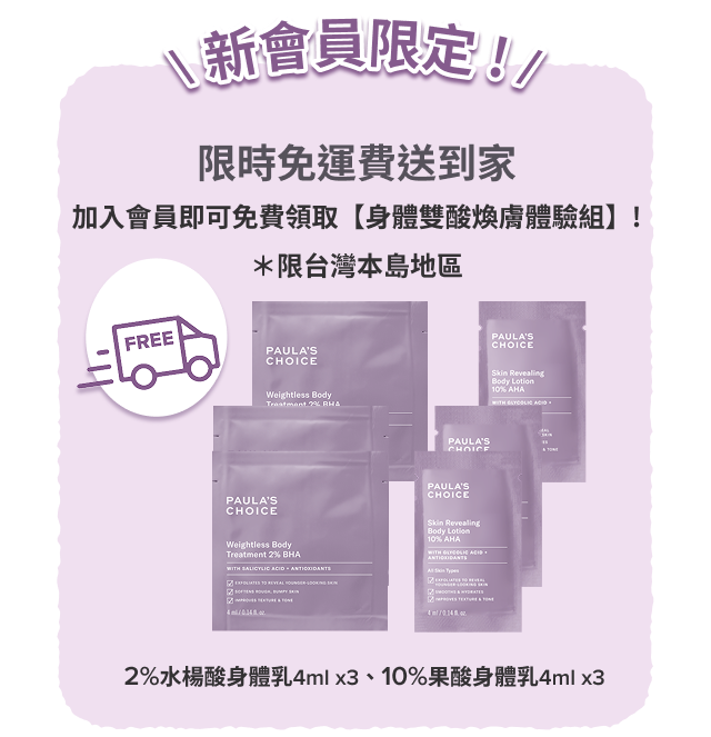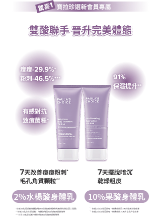 網站資料為「聯合利華高端產品事業股份有限公司」所有,未經授權同意請勿轉載使用 Copyright © 2025 PAULA'S CHOICE 寶拉珍選. All Copyrights Reserved. 5.1.4