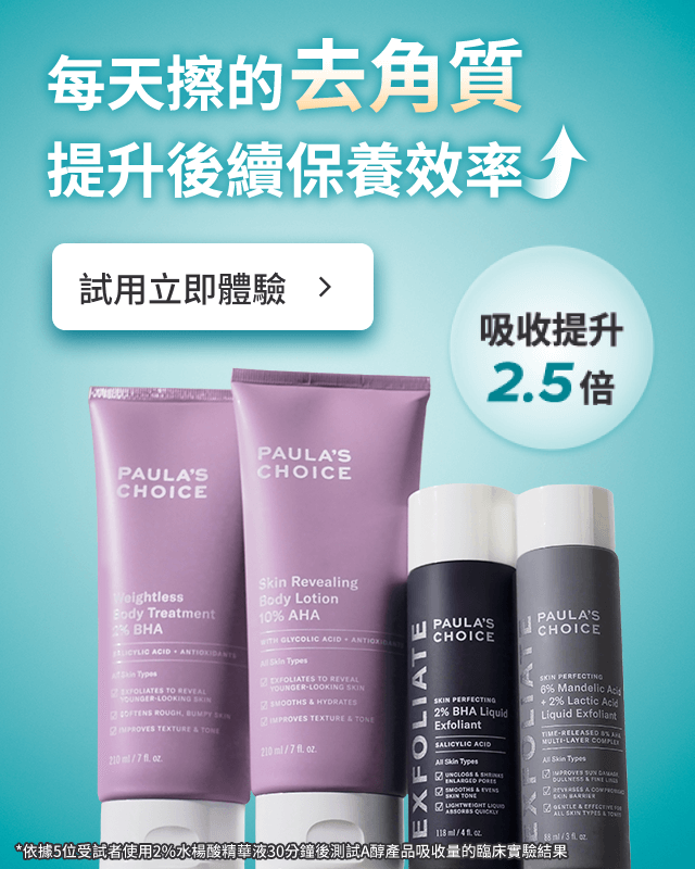 (一)$65送到家領取資格: 1.寶拉珍選官網新會員或是2024/1/1~2024/12/31未於官網買過2%水楊酸精華液118ml/8%雙重果酸精華液88ml/2%水楊酸身體乳210ml /10%果酸身體乳210ml,且未參加新會員試用領取活動即可領取。 2.本活動僅限台灣地區配送,海外地區恕無法提供此服務,感謝您的理解。 3.領取者須支付物流處理費$65享配送服務,若單筆加購任一正貨即享免運。 4.單筆購物車最多享2%水楊酸精華液/8%雙重果酸精華液二擇一,2%水楊酸身體乳/10%果酸身體乳二擇一。 5.七天內限領乙次。每帳號每試用品最多限領乙次。 |