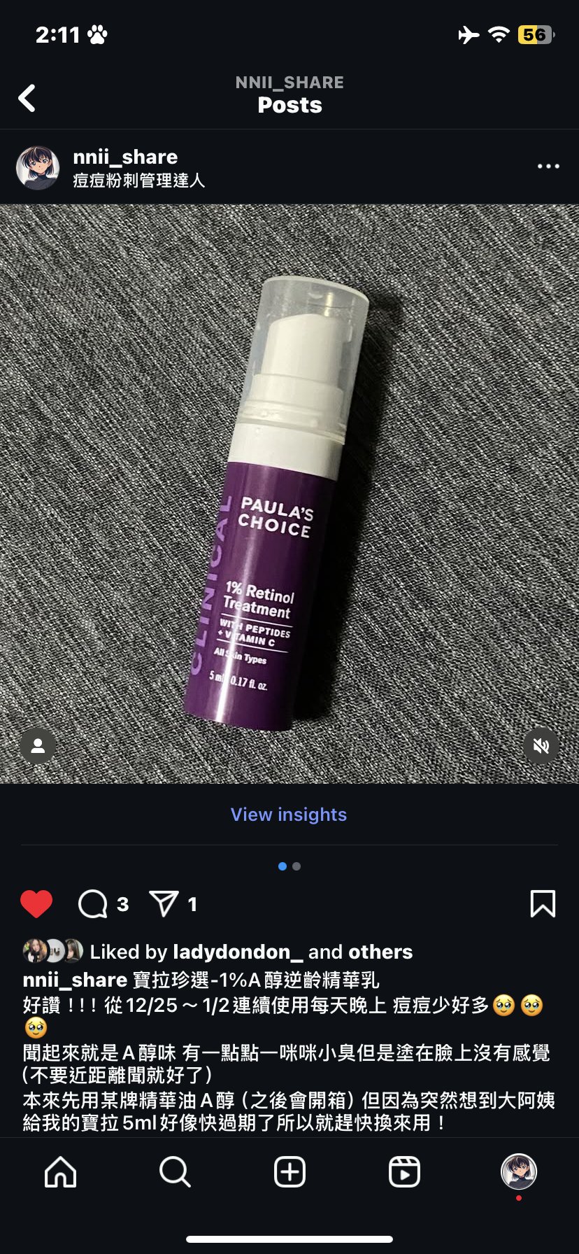 A: 因維他命A有延遲反應,初期使用含有A醛的產品,建議2-3天使用一次(一週最多使用3次),確認肌膚狀況後,再增加使用頻率。(漸進式使用)