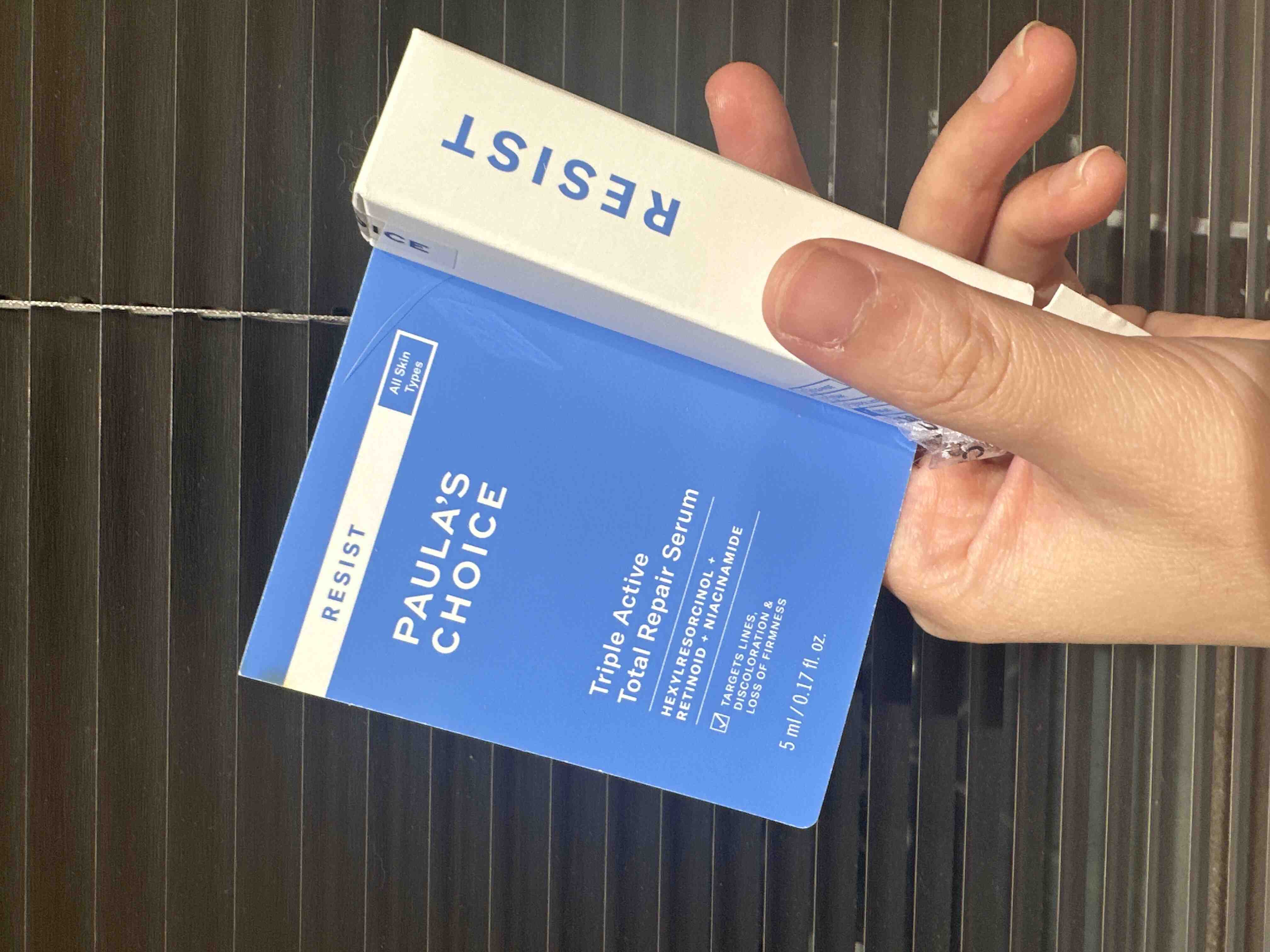 寶拉珍選首款極簡精華通過臨床實驗認證。三重全效修護精華能在1週內迅速修護肌膚細紋、膚色暗沉,並緊緻肌膚。採用3合1專業配方,含有0.3%維他命A酯,相較於A醇更加溫和不刺激,能有效撫平細紋。同時,搭配菸鹼醯胺(維他命B3),緊緻粗大毛孔。此外,己基間苯二酚能有效抗氧化和抗糖化,均勻提亮膚色。